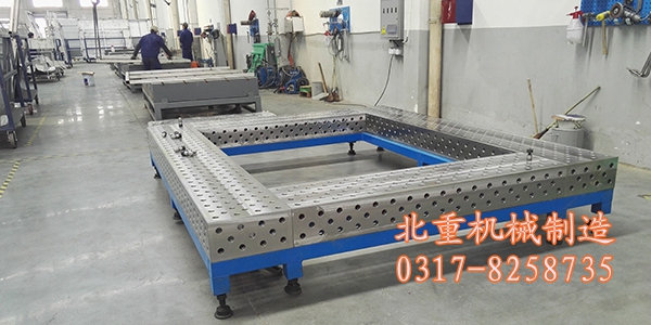 由于樹(shù)脂砂具有較好的流動(dòng)性、易緊實(shí)、脫模時(shí)間可調(diào)節(jié)、硬化后強(qiáng)度高、在其后的搬運(yùn)及合箱過(guò)程中不變形;因樹(shù)脂砂的剛度高,在澆注和凝固過(guò)程基本上無(wú)形壁位移現(xiàn)象,所以焊接平臺(tái)廠家生產(chǎn)的焊接平臺(tái)鑄件的尺寸精度高,它比粘土砂及油砂生產(chǎn)的鑄件可提高1-2個(gè)級(jí)別。